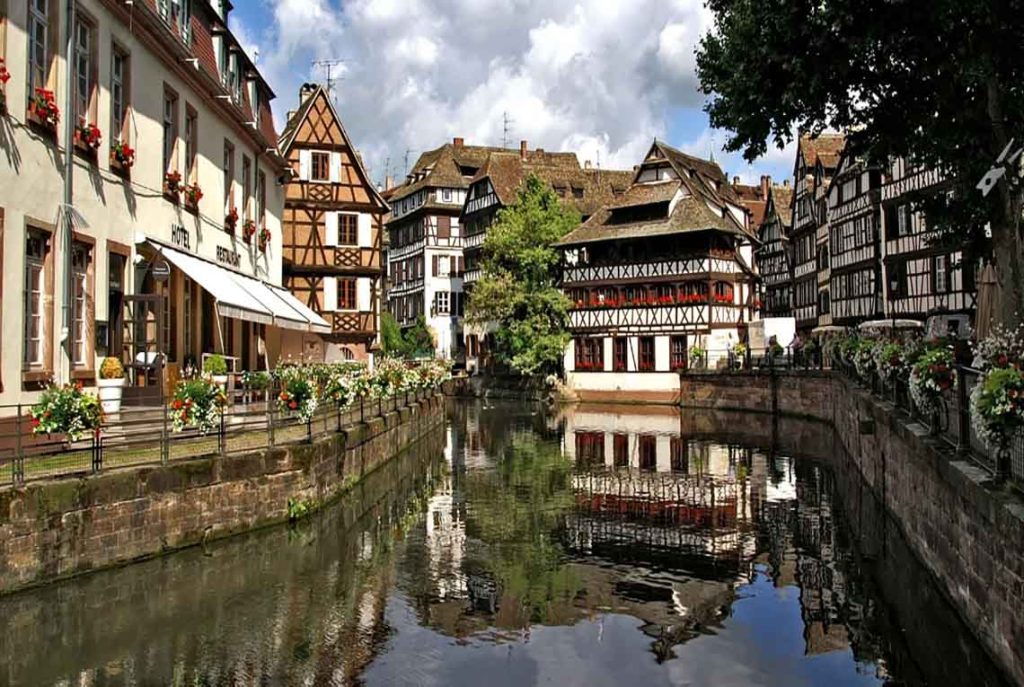 En Alsace, le temps peut changer rapidement. Une matinée brumeuse donne une atmosphère mystérieuse à la cathédrale ou aux quais, tandis qu’un ciel bleu éclatant fera ressortir les couleurs des maisons.